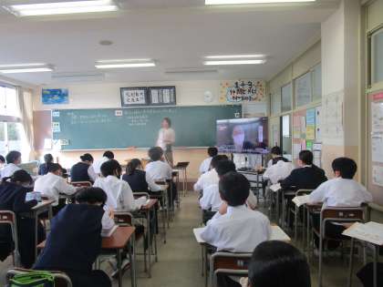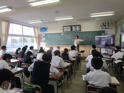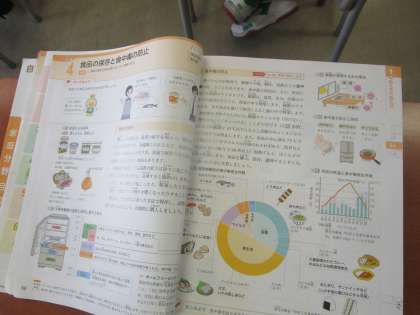 1年3組 家庭 公開日 2023/10/20 更新日 2023/10/20 1学年 10月20日(金)1限 1年3組の家庭科は、「食品の保存と食中毒防止の工夫を考えよう」という課題で学習していました。最近あった食中毒の例も挙げながら食中毒防止について学習していました。