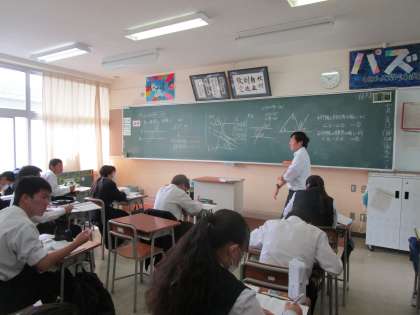 2年3組 数学 公開日 2023/10/23 更新日 2023/10/23 2学年 10月23日(月)2限 2年3組の数学は、「角の性質と証明」という課題で学習していました。一つ一つ挙手したりして確認しながら授業が進められていました。
