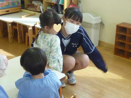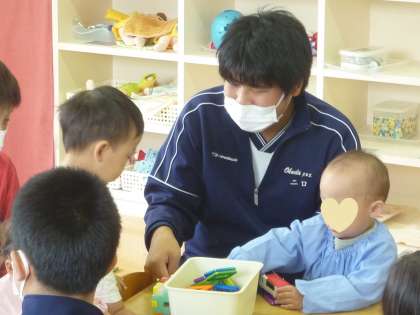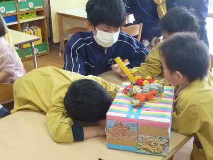 みんな、おもちゃでニコニコと遊んでくれ、中学生もホッとしていました。