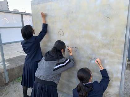 美術部ではいたち川沿いの公園で壁画制作をしています!