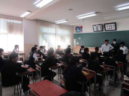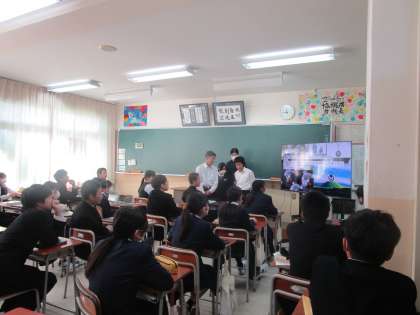 2年5組 社会 公開日 2023/10/26 更新日 2023/10/26 2学年 10月26日(木)1限 2年5組の社会は、九州をPRするためにグループで考えた企画を発表していました。みんな違うグループの企画を真剣に聞いていました。