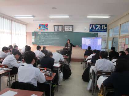 2年3組 家庭 公開日 2023/10/26 更新日 2023/10/26 2学年 10月26日(木)1限 2年3組の家庭科は、「繊維の種類による特徴をまとめよう」という課題で学習していました。画面や教科書を見ながら学習していました。