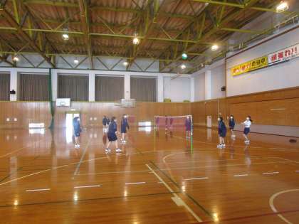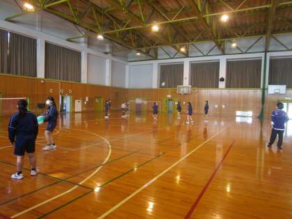 3年5組、6組女子の保健体育は、体育館でバレーボールの学習をしていました。ビーチバレーボールを使ってボールを落とさないよう拾っていました。