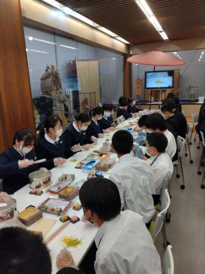 餡をこして和菓子を作っています