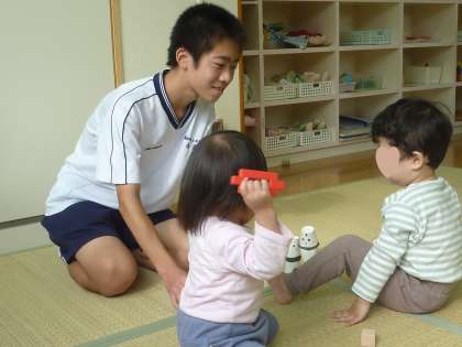 11月2日(木)10:00 今日の保育園での触れ合い活動では、生徒たちの表情がとても豊かでした。