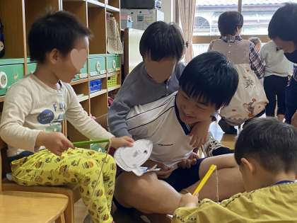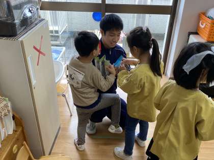 本日は5組が訪問しました。「お兄ちゃんがやってあげるよ」などと優しく話し掛けているのが印象的でした。