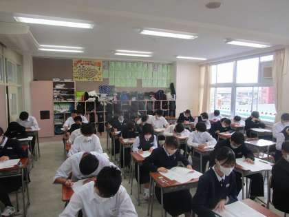 11月7日(火)2限 1年生の2限は国語の学力調査でした。写真は1年4組の様子です。