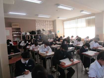 11月8日(水)2限 県中教研学力調査2日目、最後の数学のテストに挑んでいます。