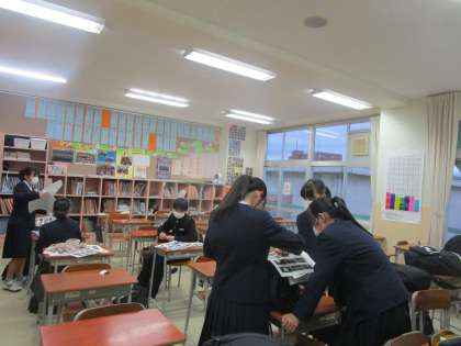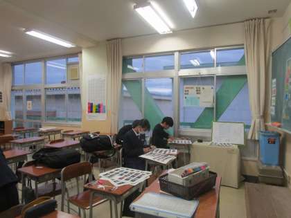 金沢校外学習の写真を実行委員、写真担当が掲示の準備をしていました。