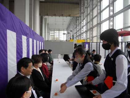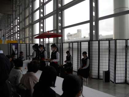 富山市中文祭 お茶席にて その2 公開日 2023/11/13 更新日 2023/11/13 部活動 1,2年生はお運びの仕事を姿勢に気を付けながら、丁寧に行いました。校長先生にお運びをした部員もいました。とてもよい体験になりました。
