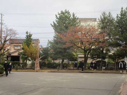 ホームページ、放送で連絡したとおり、生徒は防寒具等を着て登校しています。寒暖差に対応して登校しています。これから寒くなりますが、上手に調節して寒さに負けず体調管理してください。