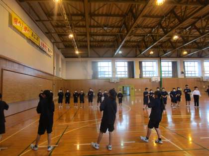 1年1組 保健体育 公開日 2023/11/14 更新日 2023/11/14 1学年 11月14日(火)6限 1年1組の保健体育は、ダンスの学習をしました。体育大会の各団のダンスをみんなで踊りました。久しぶりでみんな楽しく、違う団のダンスも楽しみました。