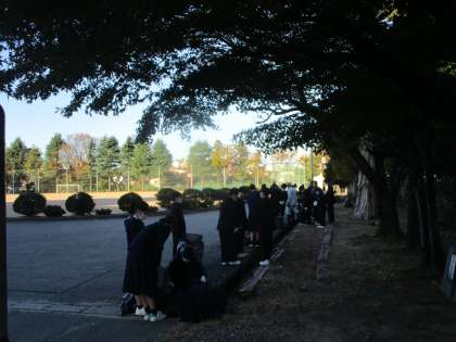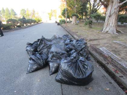 環境委員会の落ち葉回収が行われました。各学年の2組がやってくれました。あまりやらない体験で落ち葉を一生懸命ゴミ袋に入れていました。