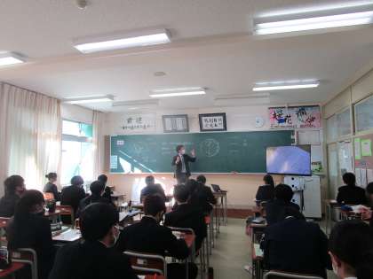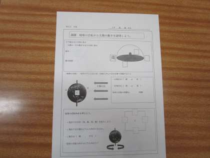 11月16日(木)1限 3年3組の理科は、「地球の自転から太陽の動きを説明しよう」という課題で学習していました。