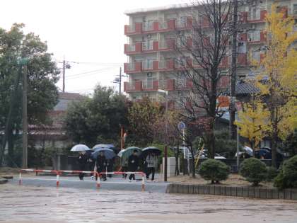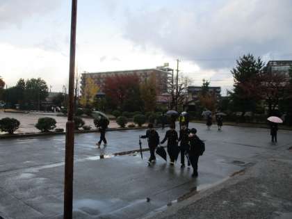 11月20日(月)朝の登校の様子 公開日 2023/11/20 更新日 2023/11/20 学校だより 今朝は雨も降り、気温も急激に低くなってきました。天気の悪い日は、道路も渋滞し、またライトレールなどの交通機関もいつも以上に混雑します。ご家庭においても、これからの時期、雨や雪の天気が予想される場合は、早めに登校するよう声かけをお願いします。