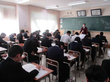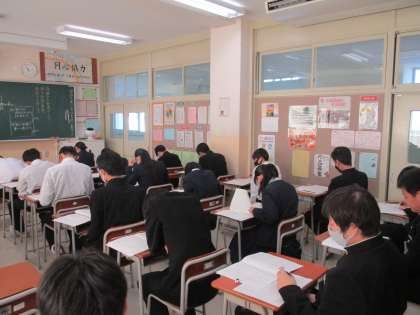 今日は2学期期末考査の2日目です。教室は暖かく、生徒は集中して問題を解いていました。