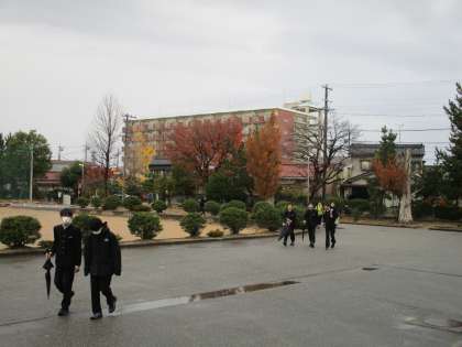 11月28日(火)朝の登校の様子 公開日 2023/11/28 更新日 2023/11/28 学校だより 今朝は肌寒く、雨も降ったりやんだりの天気でした。正門にある木々の葉も昨夜からの風で落ちているようです。