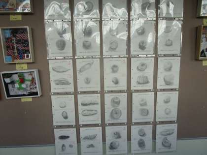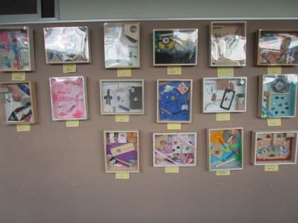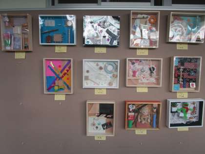 美術の授業で作成した作品が展示されています。ぜひ、懇談会の折などご覧ください。