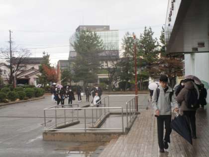 12月7日(木)朝の登校の様子 公開日 2023/12/07 更新日 2023/12/07 学校だより 雨の中の登校となりました。冬に向けての登下校、傘をさしたり、雨、雪、風等で視界が狭くなります。交通安全に気を付けて登下校してください。来週11日(月)から20日(水)まで年末の交通安全県民運動期間になります。年末慌ただしいですが、落ち着いて登下校してください。