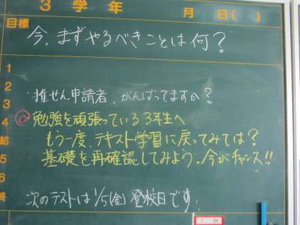 これまで頑張ってきた「3年生の皆さん、君たちならできる」、あと3ヶ月あまり、3年生を応援しています。