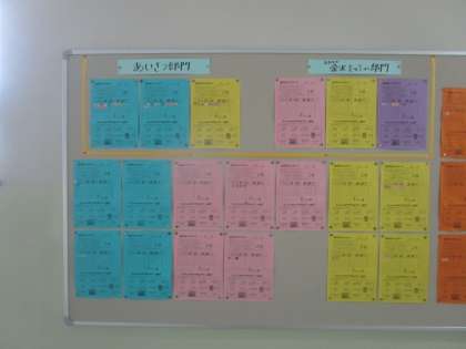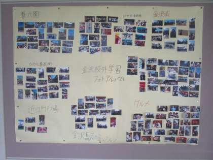 2年生の廊下の学年掲示板に金沢校外学習のミッションの結果や写真が展示されました。