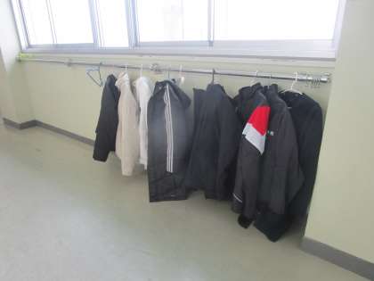 寒い季節となり、登下校、生徒は防寒具を着ていますが、防寒具は廊下にかけています。