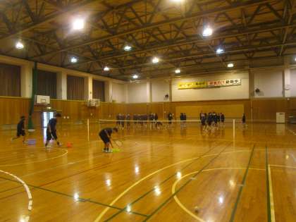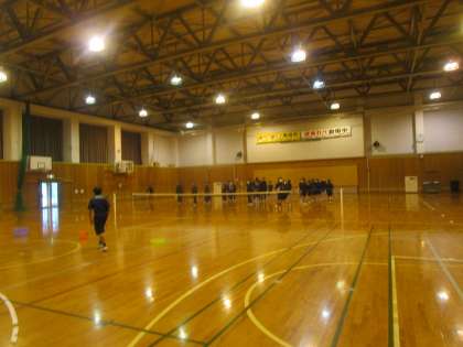 1年3組 保健体育 公開日 2023/12/13 更新日 2023/12/13 1学年 12月13日(水)1限 1年3組の保健体育は学習したソフトテニスを体育館のテニスコートで練習しました。テニス部やテニス経験者の生徒が球出しをしてくれ、ボレーをしたり、打ち返したりしました。