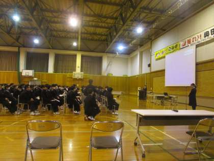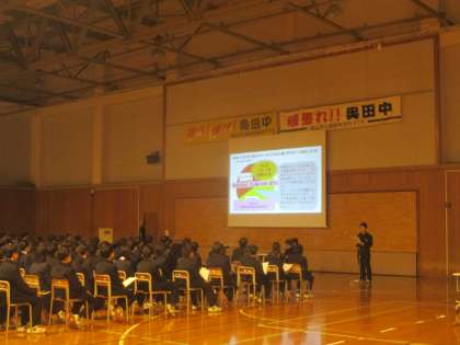 心当たりのある生徒もおり、最後の質問ではゲーム依存等になったら、元に戻れるのか、回復するのにどれくらいの時間がかかるのかなど気にかかることを積極的に質問していました。教室に帰って、感想及び12月のメディアとの関わり方の目標を決めていました。保護者の方にも来ていただき、保護者の方にも考えてもらう機会となりました。ありがとうございました。