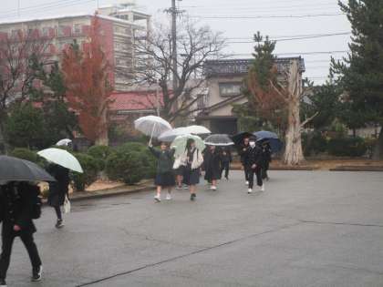 雨で8時10分ぎりぎり、8時10分を過ぎる生徒が多かったです。余裕をもって天候の悪い日はお願いします。