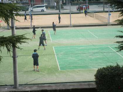テニスコートではソフトテニス部が練習していました。久しぶりにテニスコートの練習で気持ちよさそうにボールを打ち合っていました。