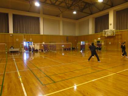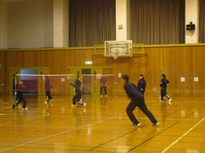 12月19日(火)午後 男女バドミントン部が、フットワークを頑張っていました。