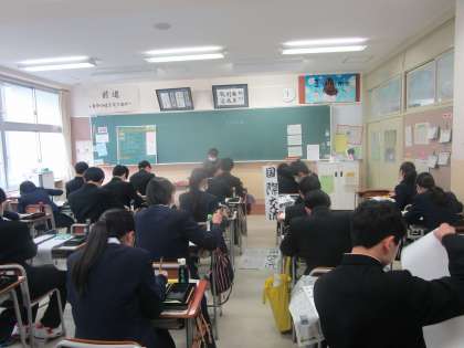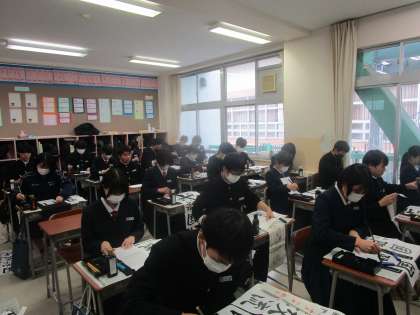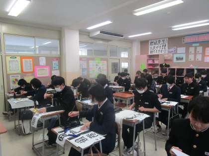 各クラスで書き初め練習を行いました。字は「国際交流」です。今の時代にふさわしい4文字です。