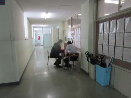 終業式後、2学期最後の学活が各クラスで行われました。廊下で担任の先生から通知表が渡されました。3学期に向けて頑張ったこと、頑張らなければいけないことなど考え、過ごしてください。