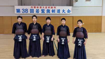 内閣総理大臣杯若鷲旗剣道大会 公開日 2023/12/27 更新日 2023/12/27 部活動 兵庫県立武道館で行われている内閣総理大臣杯若鷲旗剣道大会(全国大会)に参加しています。 4日間試合が続く大会ですが、疲労も溜まる中全国の中学生と剣を交えています。 少しでも成長できるように引き続き頑張ります!