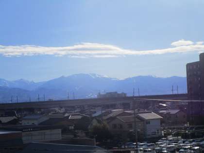 地震で自然の怖さを感じますが、今日は立山連峰が陽ざしを浴びて雄大にそびえ立っています。