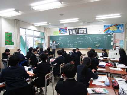 2年2組 理科 公開日 2024/01/10 更新日 2024/01/10 2学年 1月10日(水)5限 2年2組の理科は、「回路図」について学習していました。様々な記号があり、先生の説明を聞きながら、ワークシートにまとめ、学習を深めていました。
