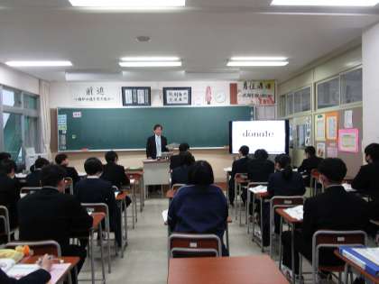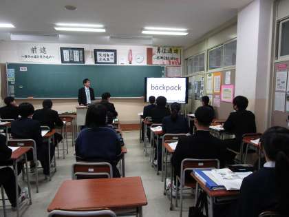 3年4組の英語は、画面に出た英単語の発音、意味を全員で確認していました。