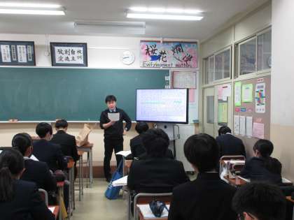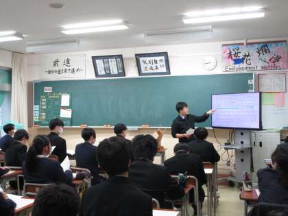 3年3組の英語は、10日(水)に行った確認テストの解説がされていました。