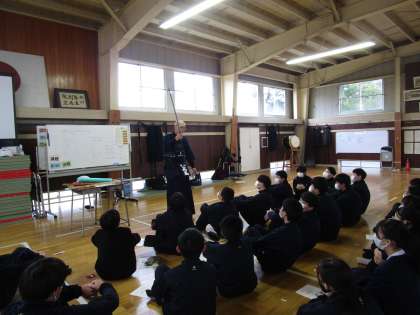 1年生 保健体育 剣道 公開日 2024/01/15 更新日 2024/01/15 1学年 1月15日(月) 1年生は、今日から剣道の授業が始まりました。奥田中学校の校長先生だった高島雅之先生に今年も講師として来ていただき、学習しています。3週間、剣道の特性を体感します。