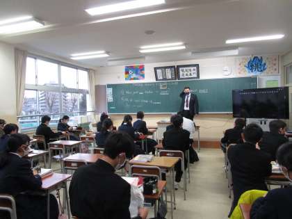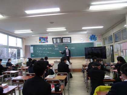 2年1組 英語 公開日 2024/01/18 更新日 2024/01/18 2学年 1月18日(木)1限 2年1組の英語は、ALTの先生が授業をしていました。「あなたの○○はどこの国で作られた物」という課題で自分の身の回りのものがどこの国で作られたか質問し合っています。