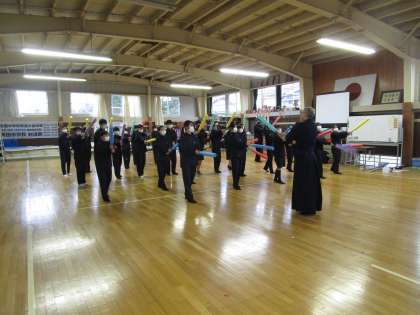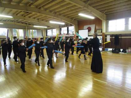 1学年保健体育 剣道3時間目 公開日 2024/01/18 更新日 2024/01/18 1学年 剣道授業の3回目でした。送り足の練習をしたり、高島先生手作りの塩ビパイプにウレタンスポンジをつけた「いたくしない」で面、小手、胴の練習をしました。