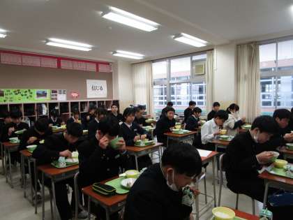 3年生も卒業が近くなり、3年間慣れ親しんだ給食とももうしばらくでお別れです。受験で余裕はないかもしれませんが、残り少ない給食、味わって食べてください。