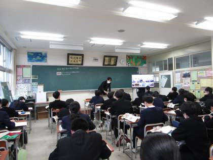 1年4組 社会 公開日 2024/01/18 更新日 2024/01/18 1学年 1月18日(木)5限 1年4組の社会は、移民の歴史と多様な民族構成で「北アメリ州にはどうして多様な民族区が集まったのだろうか」という課題で画面をみながら、学習を深めていました。