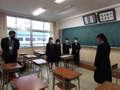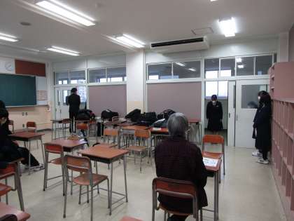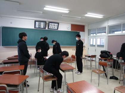 3年面接練習 公開日 2024/01/18 更新日 2024/01/18 3学年 1月18日(木)午後 3年生は進路懇談会中ですが、県立推薦の面接練習をA棟4階学年室で練習していました。面接の手引きを見ながら、友達同士で流れを確認したり、模擬面接練習をしたりしていました。先生からもアドバイスをもらい、礼儀正しく自分のよさを伝えれるよう頑張っていました。