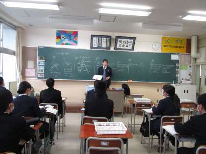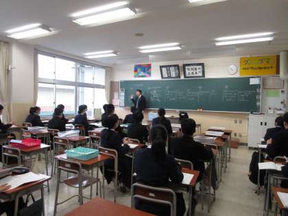 1月19日(金)3限 2年4組の数学は217ページの問題を黒板に解答を書いて、みんなで確認していました。