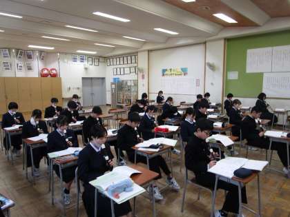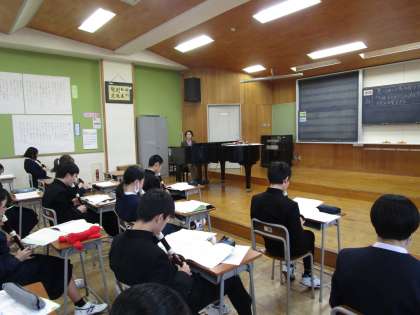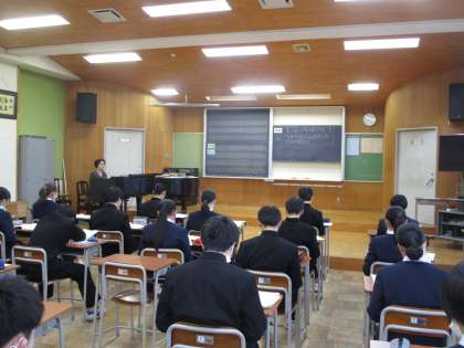 2年2組 音楽 公開日 2024/01/19 更新日 2024/01/19 2学年 1月19日(金)5限 2年2組の音楽は、アルトリコーダーで息づかいに気を付けて吹こう、「きみとともに」のメロディーとリズムを覚えようという課題で学習していました。アルトリコーダーの落ち着いた深みのある音が響いていました。
