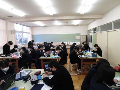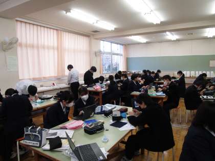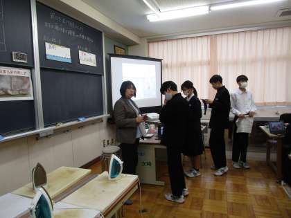 1月19日(金)5限 2年1組の家庭科は、被服室でべんとう袋を製作していました。
