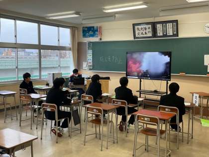 1学年「働く人から学ぶ」 (3)救命・保安分野 公開日 2024/01/19 更新日 2024/01/19 1学年 消防士の仕事について学習しました。 消火活動の様子について、実際の映像を見ながら、常に危険と隣り合わせであることを実感しました。 人命救助に携わる方の姿に感銘を受けたようです。