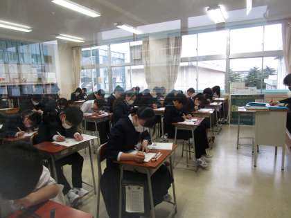 1月22日(月)1、2限 2年生は、第2回のテキスト確認テストに挑んでいました。