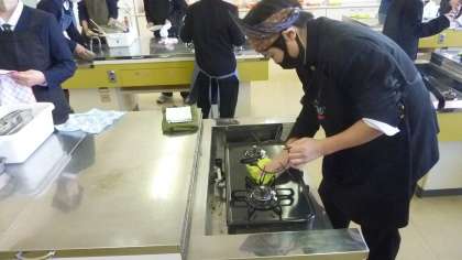 今日は2組と4組が「豚肉のしょうが焼き」の調理実習をしました。